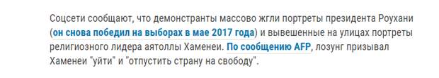 В самом Тегеране и Раште толпа протестовала даже против Стражей исламской революции (местные спецслужбы плюс аналог Нацгвардии), поджигая правительственные здания, полицейские мотоциклы, переворачивая полицейские машины. Это были не мирные протесты, а насилие, нарушение законов, агрессия, что нельзя оставлять безнаказанным.